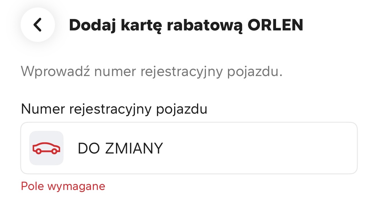 6. Na dowolnej stacji ORLEN poproś pracownika o zmianę numeru rejestracyjnego w aplikacji